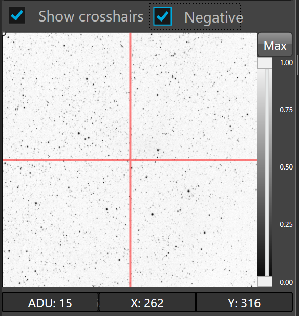 Show crosshairs shows/hides the red crosshairs locating the zero guiding error point.