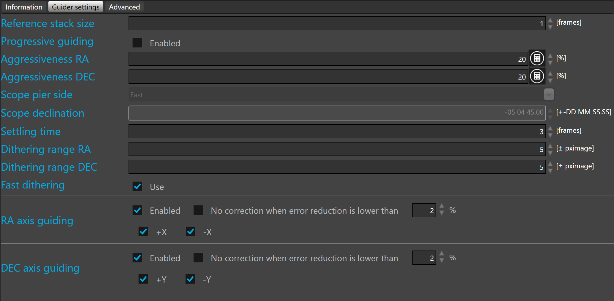 The more accurate the mount, the smaller the aggressiveness should be configured and vice-versa. Even with this recommendation, it is sometimes hard to objectively set a good aggressiveness.